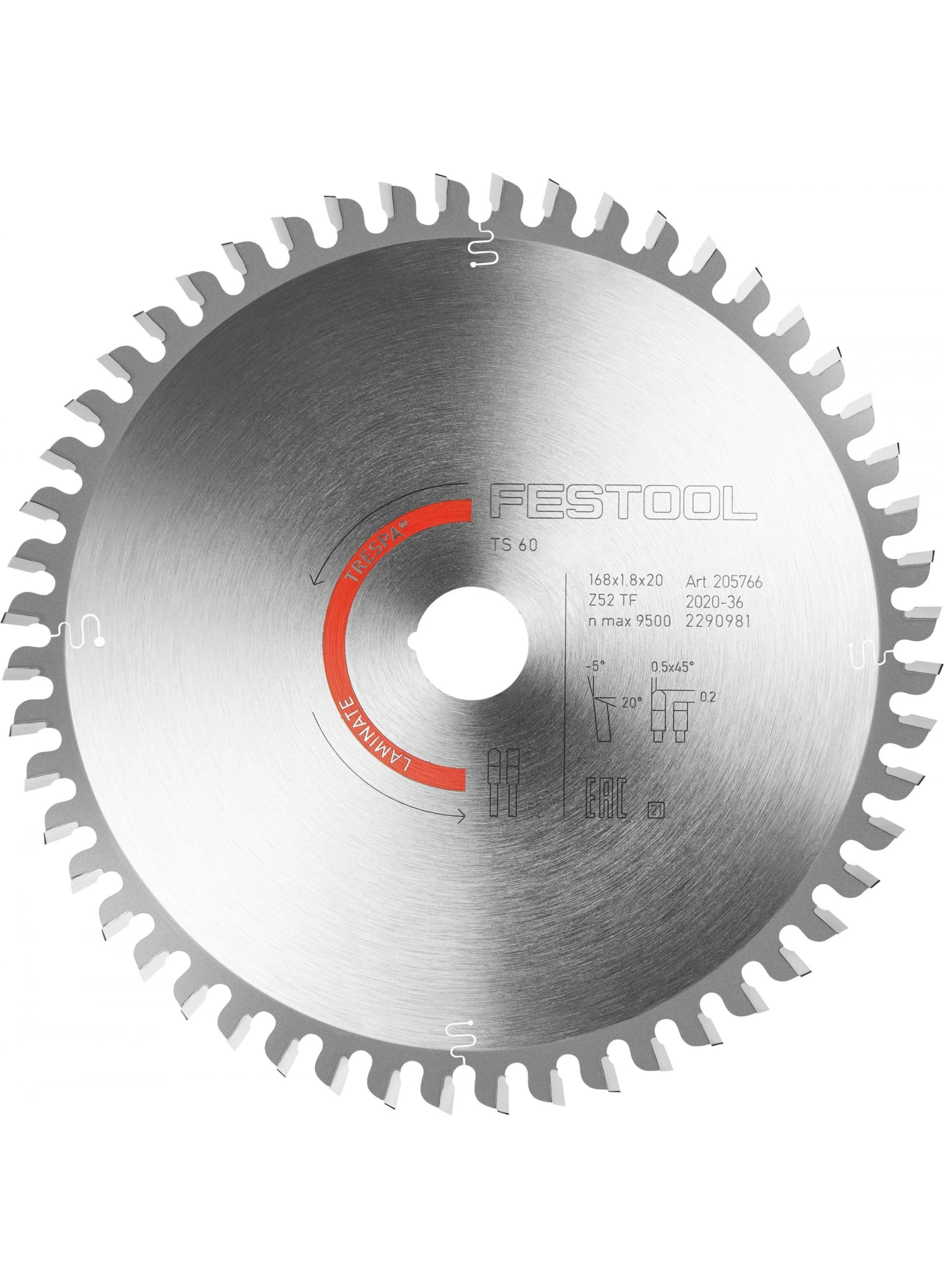 Eigenschappen van FESTOOL HW 168X1,8X20 TF52 L CIRKELZAAGBLAD LAMINATE/HPL